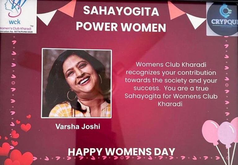 Our Founder Mrs. Varsha Joshi, was facilitated in Women's Kharadi, Pune group for her contribution to the society.
